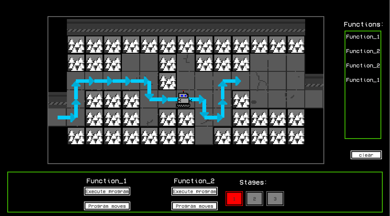 Each level consists of three different stages. The challenging part of the game is beating all levels with the same functions.